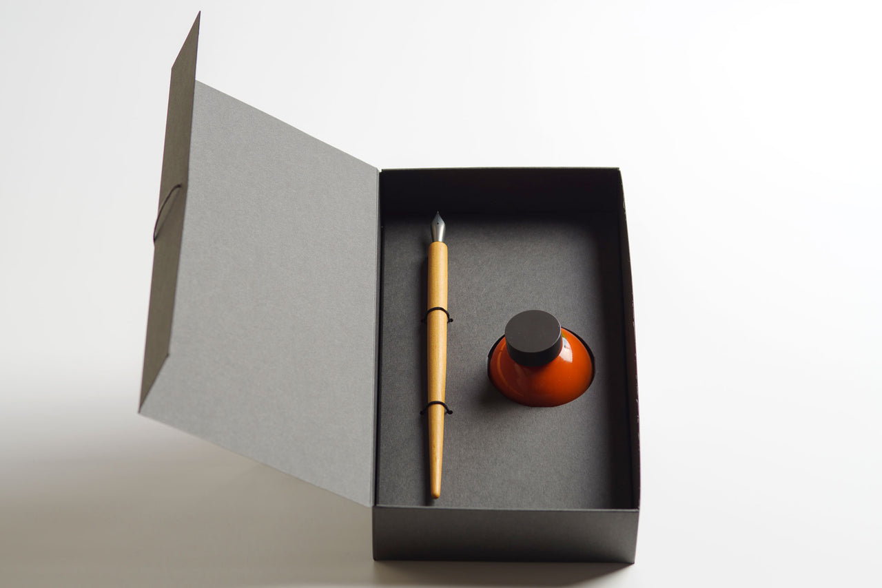 こちらはオリジナルインクとカキモリさんこだわりのつけペン(Pen nib)のセットです。
