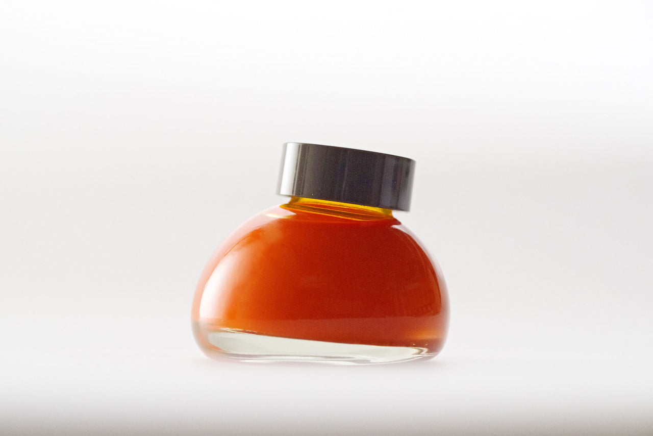 コロンとした可愛らしいインク瓶は、著名なデザイナーの小泉誠さんによるデザインです。このこだわりのインク瓶についても、ぜひカキモリさんのWebサイトをご覧ください。