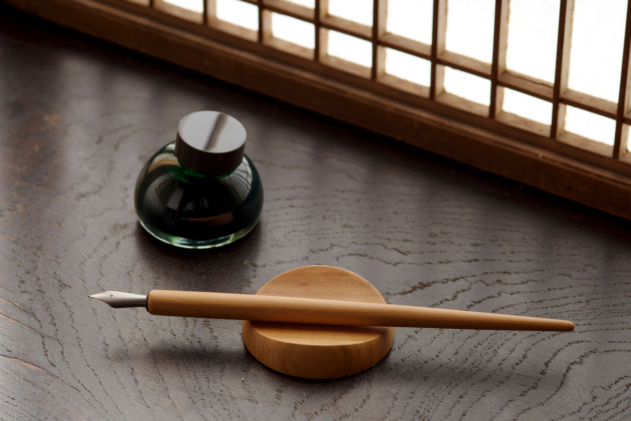 コロンとした可愛らしいインク瓶は、著名なデザイナーの小泉誠さんによるデザインです。このこだわりのインク瓶についても、ぜひカキモリさんのWebサイトをご覧ください。