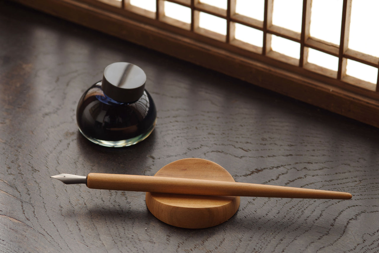 コロンとした可愛らしいインク瓶は、著名なデザイナーの小泉誠さんによるデザインです。このこだわりのインク瓶についても、ぜひカキモリさんのWebサイトをご覧ください。