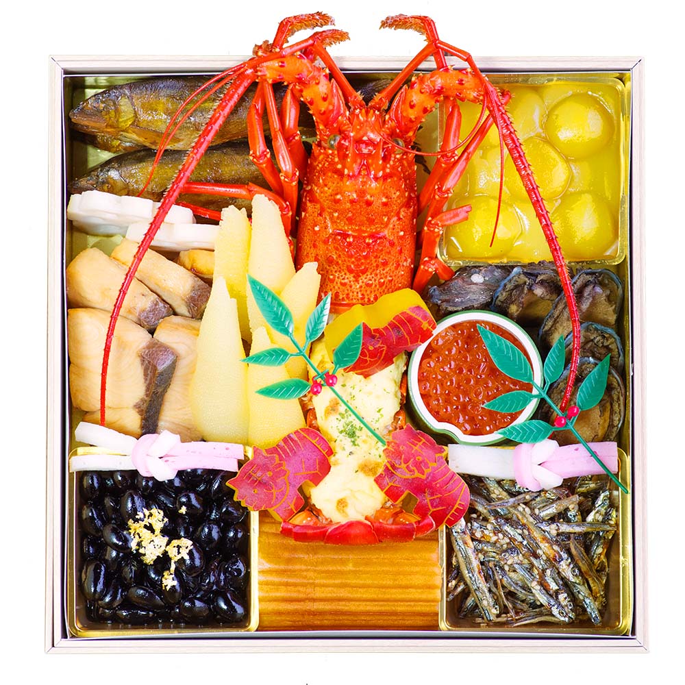 伊勢海老グラタン 数の子醤油漬け 子持ち鮎甘露煮 栗きんとん アワビうま煮
