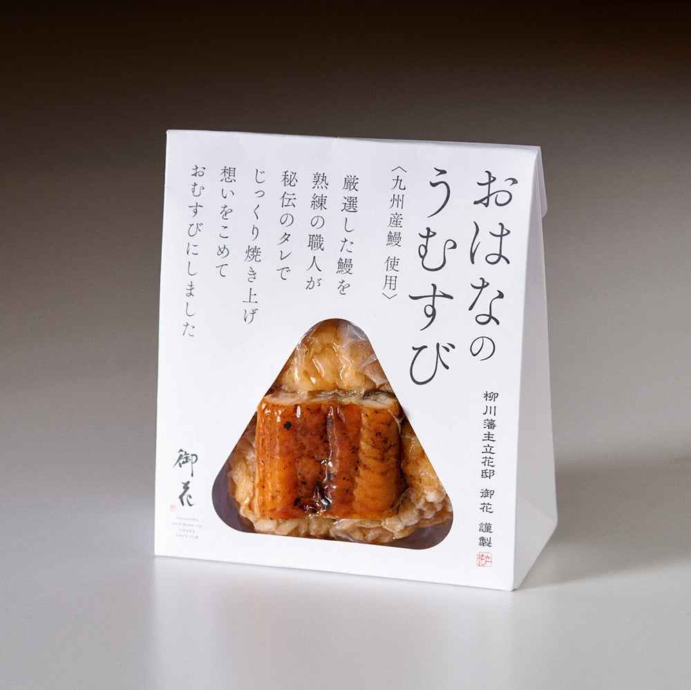 御花の料亭でも提供している柳川名物「うなぎのせいろ蒸し」を贅沢なおむすびにした人気NO.1商品の「おはなのうむすび」がさらに美味しくなりました。