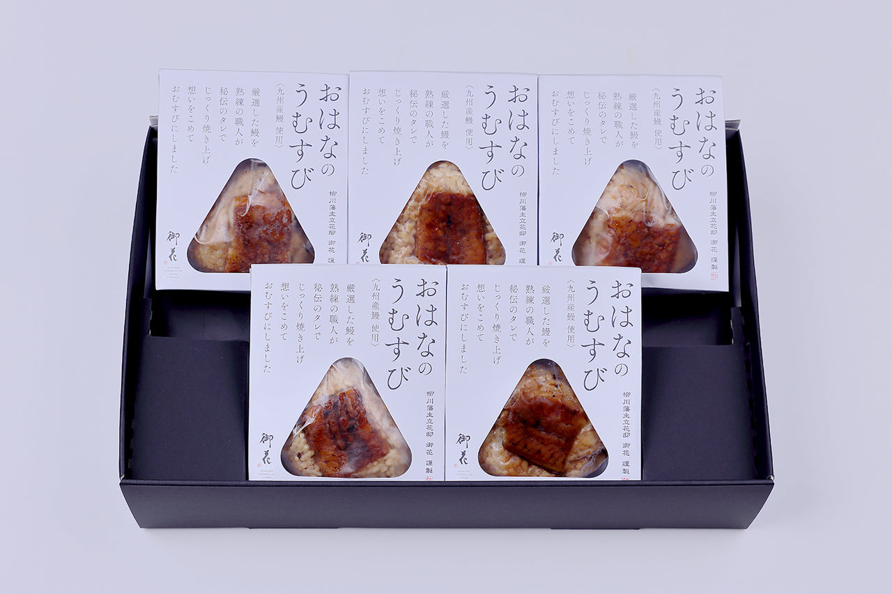 御花の料亭でも提供している柳川名物「うなぎのせいろ蒸し」を贅沢なおむすびにした人気NO.1商品の「おはなのうむすび」がさらに美味しくなりました。