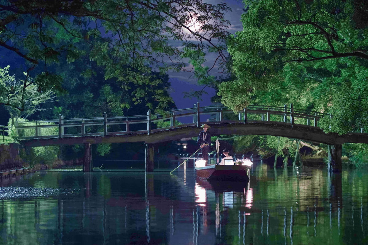 柳川の美しい夜の景色と、月見酒を愉しみながら、